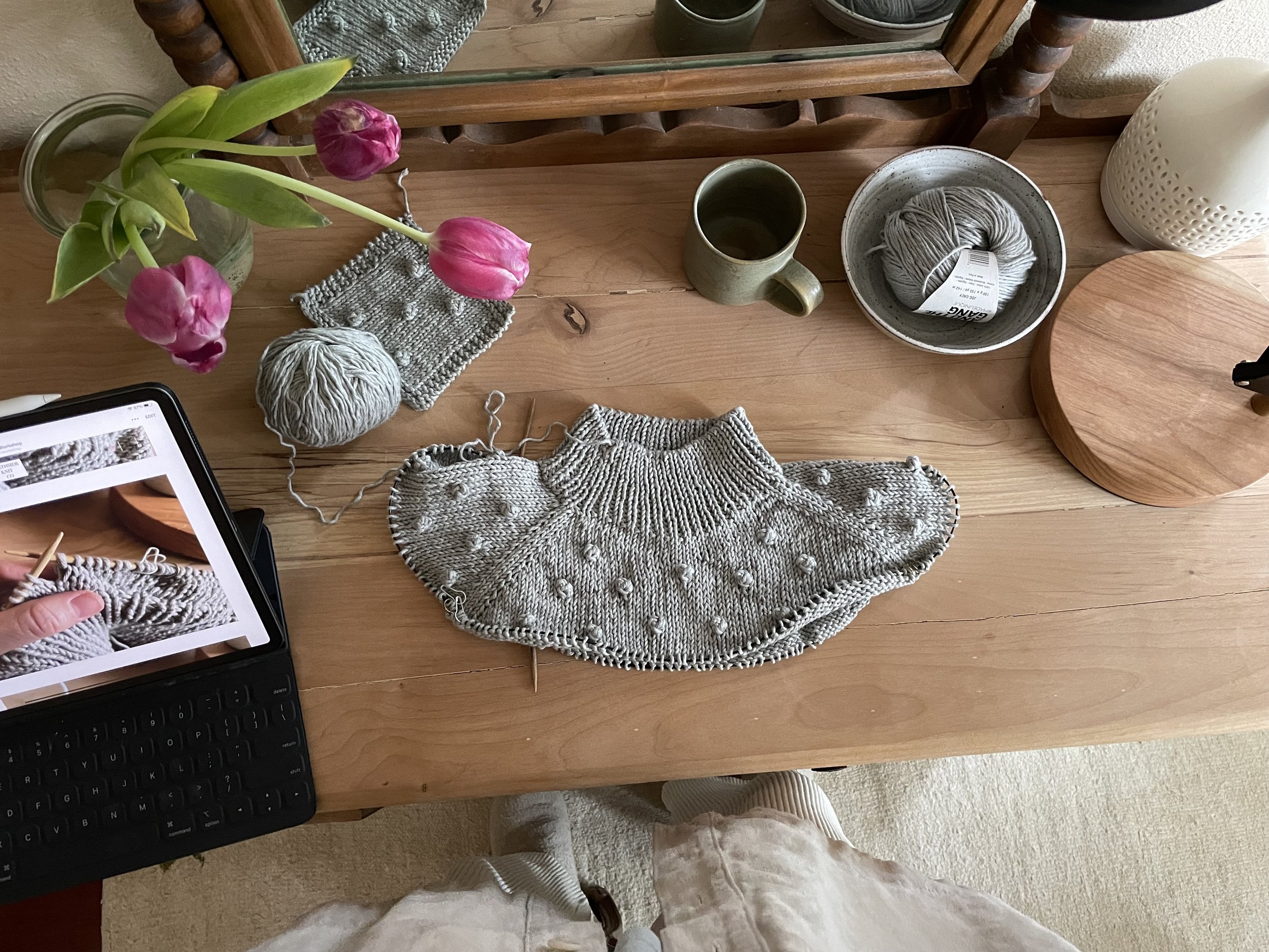 Bonus content: fiber goods we like, knitting topics, our WIPs, and more